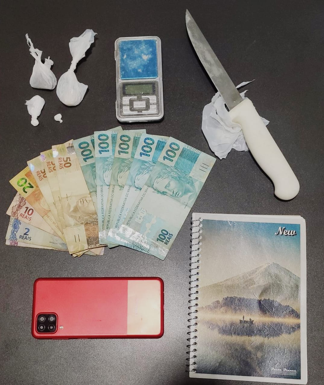 Na casa do indivíduo, os policiais encontraram porções cocaína e maconha, bem como balança de precisão. Além do tráfico, o jovem foi autuado também por desobediência, tendo em vista que desobedeceu a ordem de abordagem, correndo e se trancando dentro de sua casa, e jogando uma bucha de cocaína na privada e dando a descarga. Contudo, o entorpecente foi encontrado ao sair do encanamento.