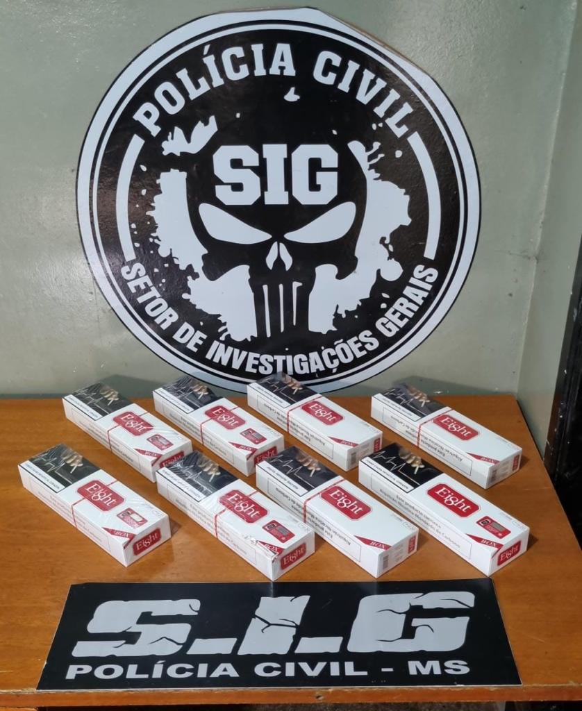 Com relação a sacola de cor preta, esta foi entregue para a equipe de investigadores pelo autor, sendo que dentro foram localizados oito pacotes de cigarros na marca “Eight”, contendo 20 maços em cada pacote, que seriam revendidos naquele local. Diante disso, foi dada voz de prisão ao indivíduo, que foi levado para a delegacia, onde foi formalizado o flagrante.