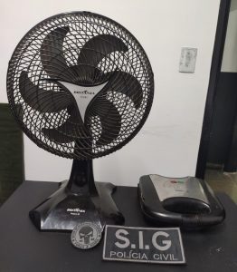 O suspeito teria passado em frente à residência e não viu movimentação, bateu palmas e, ao ver que não tinha ninguém, adentrou a casa pela porta da frente, danificando-a na parte inferior, subtraindo do local um ventilador e uma sanduicheira, sendo que foi surpreendido pela equipe do SIG enquanto estava fugindo do local e, mesmo tentando se esconder em um terreno baldio, foi localizado e preso pelos policiais, e então confessou o delito.