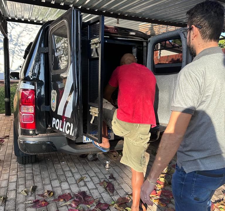 A Polícia Civil, por intermédio da Delegacia de Atendimento à Mulher de Naviraí (DAM) prendeu nesta sexta-feira, 23/06, em flagrante, V. S., de 42 anos, pelos crimes de injúria e ameaça no contexto de violência doméstica. A mãe, de 68 anos, compareceu à delegacia e informou que o filho, residente em outra cidade, estava dormindo há alguns dias em sua casa, sendo que ontem levou pessoas desconhecidas para a residência.