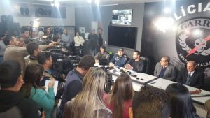Durante a coletiva de imprensa, o Delegado-Geral da Polícia Civil, Marcelo Vargas Lopes foi informado por investigadores que Diogo André dos Santos Almeida, 19 anos e mais uma pessoa foram presas após troca de tiros com a polícia, em Corumbá. Diogo foi encaminhado para o hospital da cidade, após ser baleado no confronto.