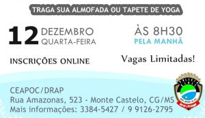 O encontro vai acontecer no dia 12/12/2018 às 8h30m, na sede do CEAPOC, na Rua Amazonas, 523, no Bairro Monte Castelo. Para maiores informações, ligue – (67) 3384-5427 / (67) 9 9126-2795. As vagas são limitadas e as inscrições podem ser feitas pela internet.