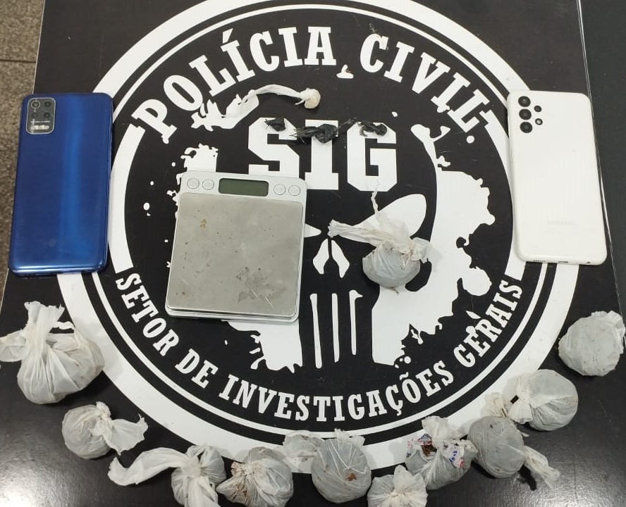 Por volta das 15h, os policiais civis avistaram A.C.S. conduzindo a referida moto. Ao ser abordada, ela demonstrou nervosismo, o que motivou uma revista pessoal, sendo encontradas com ela, porções de pasta base de cocaína e maconha. Posteriormente, em vistoria na residência da autora, foram descobertas mais substâncias ilícitas, incluindo três porções de pasta base de cocaína, dez porções de maconha e uma balança de precisão.