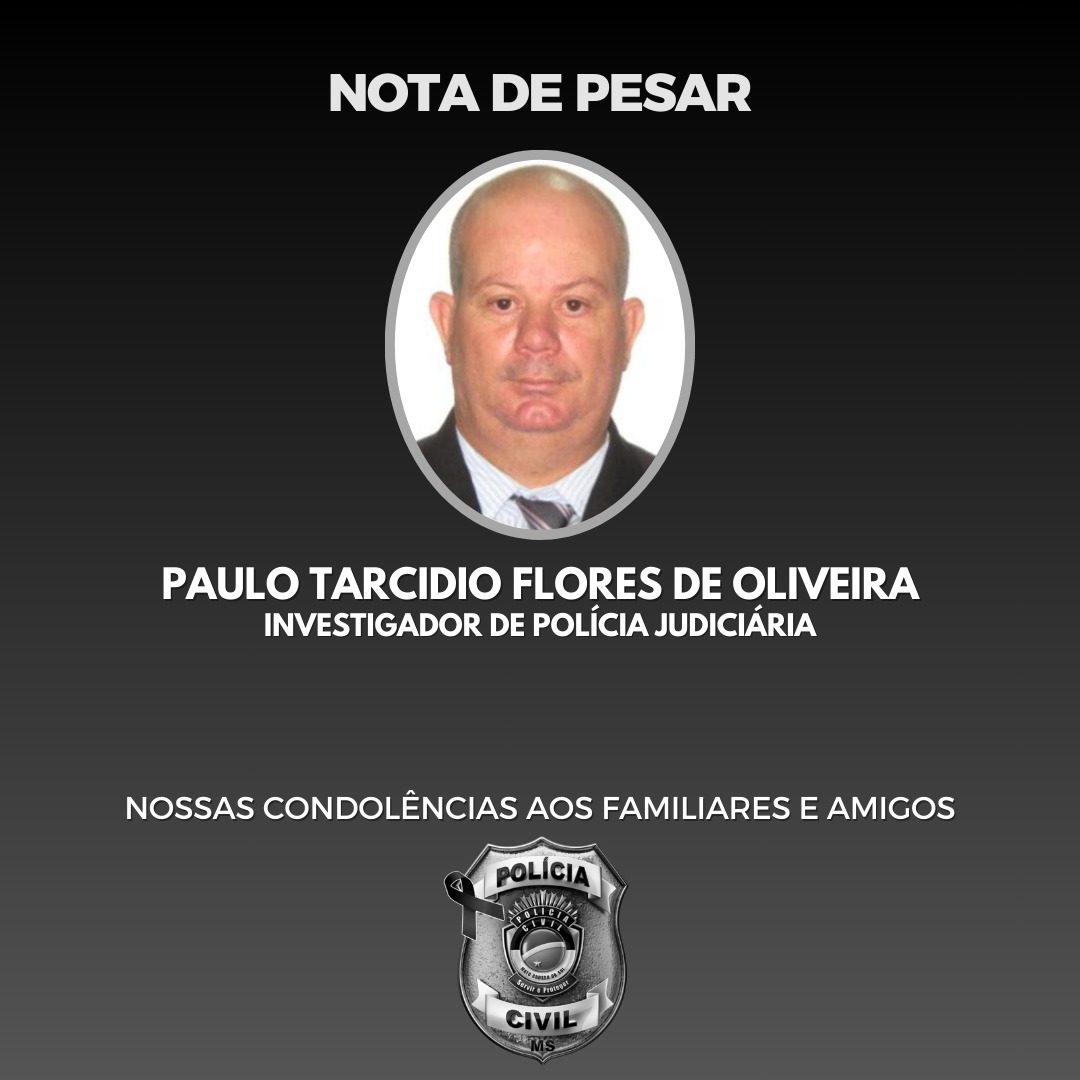 É com imenso pesar que informamos o falecimento do Investigador de Polícia Judiciária, Paulo Tarcidio Flores de Oliveira, aos 54 anos de idade. Ele era renal crônico e estava em tratamento.