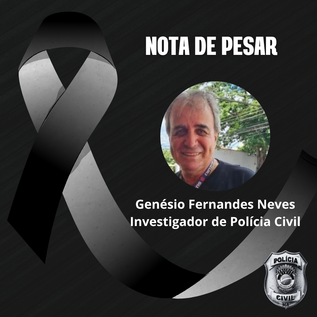 A Polícia Civil do Mato Grosso do Sul (PCMS) manifesta profundo pesar pelo falecimento do investigador aposentado Genésio Fernandes Neves, ocorrido nesta terça-feira (31/03/2026). Em sua trajetória profissional, atuou com dedicação ao trabalho de investigação, contribuindo para o fortalecimento da instituição.