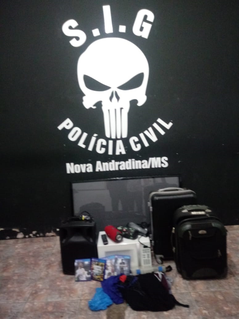 Nova Andradina (MS): Polícia Civil de Nova Andradina identifica dois suspeitos de furto a uma casa localizada no Residencial Portal do Parque. Os suspeitos, um homem de 22 anos e outro de 39 anos, foram indiciados pelo crime de furto e parte dos itens