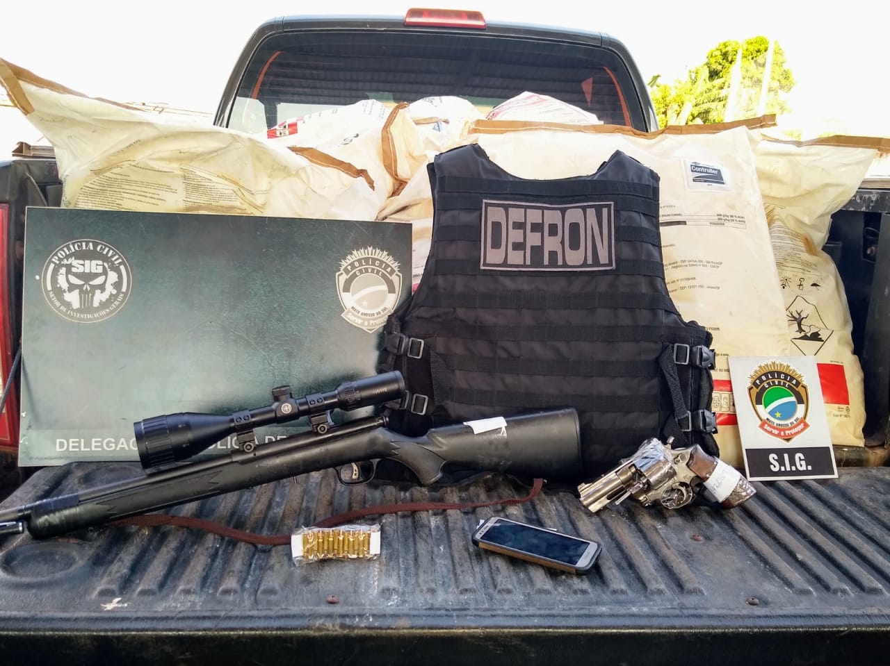 Ribas do Rio Pardo(MS): Na madrugada deste sábado (25), o S.I.G. (Setor de Investigações Gerais) da Polícia Civil de Ribas do Rio Pardo, prendeu em flagrante um indivíduo de 19 anos, por posse irregular de arma de fogo. O homem é suspeito, também, de
