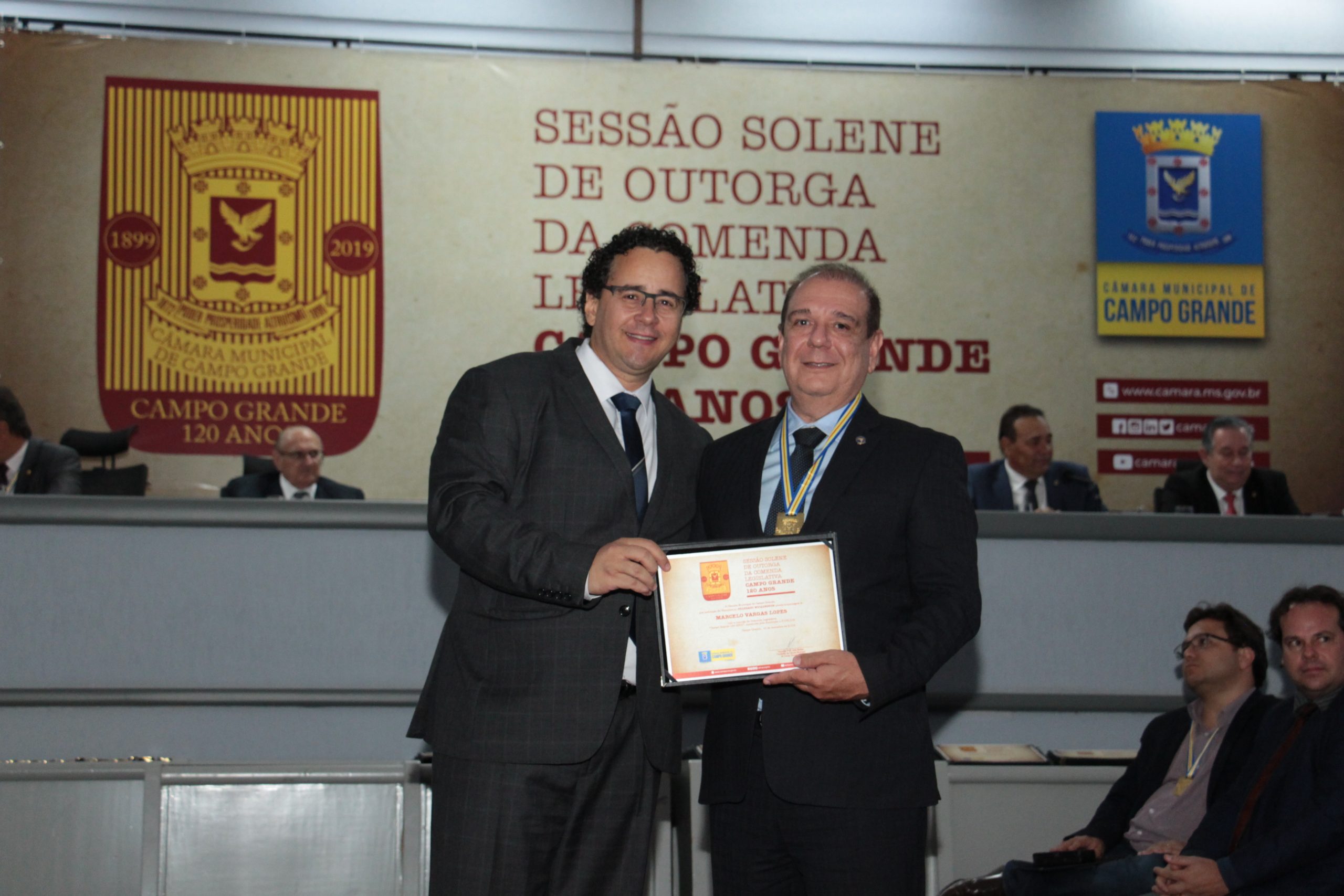 Campo Grande (MS) – O Delegado-Geral da Polícia Civil de Mato Grosso do Sul, Marcelo Vargas, foi um dos homenageados pela Câmara de Vereadores de Campo Grande, com a Medalha Legislativa em comemoração aos 120 anos de Campo Grande. A sessão solene de