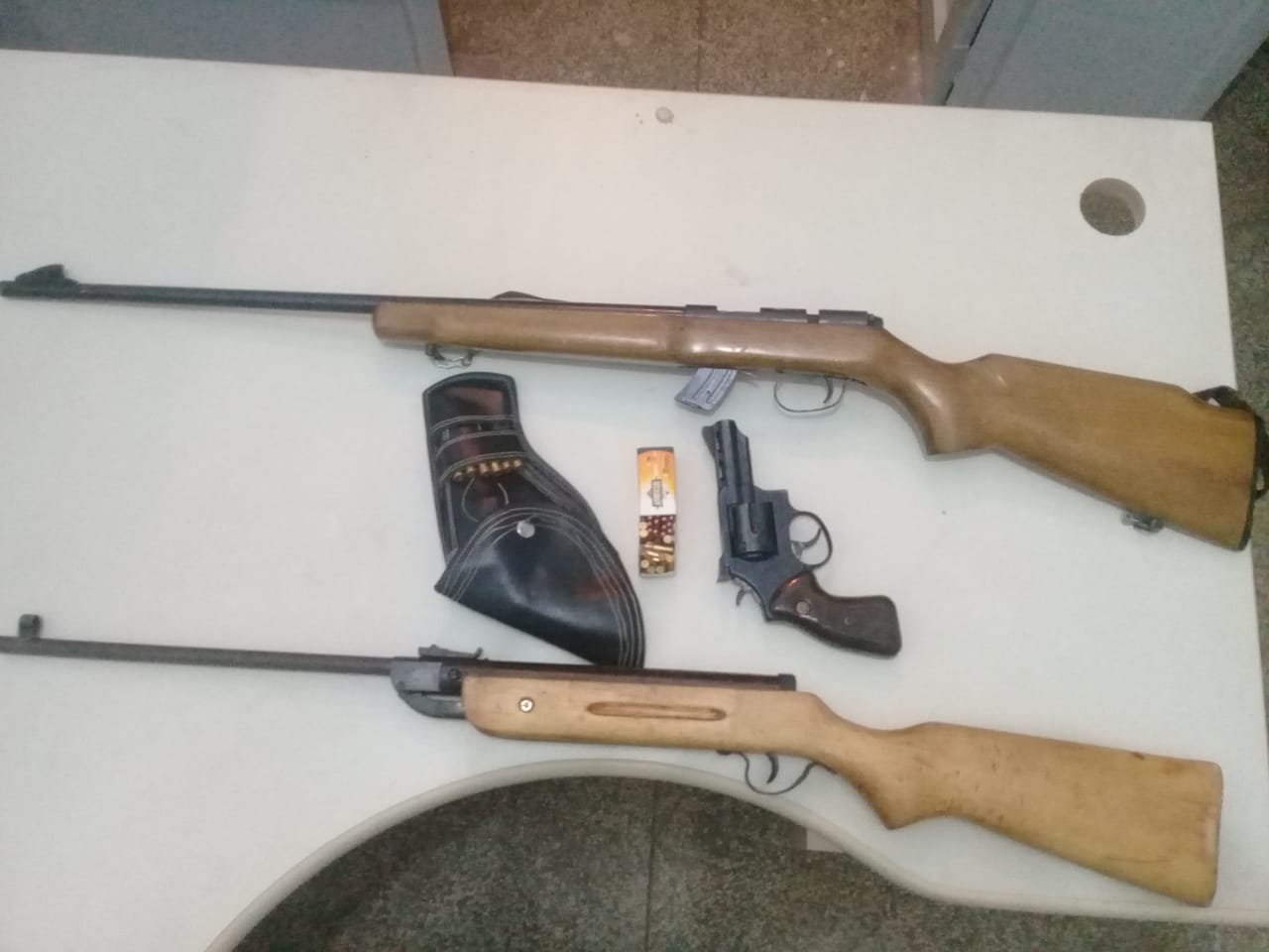 Terenos (MS): A Polícia Civil de Terenos prendeu em flagrante, um homem de 35 anos, no assentamento Paraíso, por posse irregular de armas de fogo de uso permitido. Claudinei Fernandes Costa é natural de Miranda/MS e contra ele já havia Mandado de Prisão