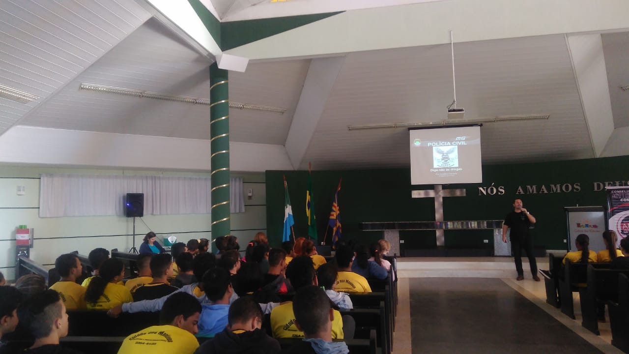 Campo Grande (MS): Na data de hoje (24), a Polícia Civil através do Delegado Titular da DENAR – Delegacia Especializada de Repressão ao Narcotráfico Dr. Gustavo Ferraris, ministra palestra antidrogas no projeto Cidade dos Meninos para