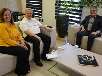 O Delegado-Geral da Polícia Civil – Lupérsio Degerone Lúcio recebeu, na tarde desta quinta-feira (4), o Arcebispo da Arquidiocese de Campo Grande – Dom Dimas Lara Barbosa, em companhia da delegada Maria de Lourdes Souza Cano. No mês de setembro, a