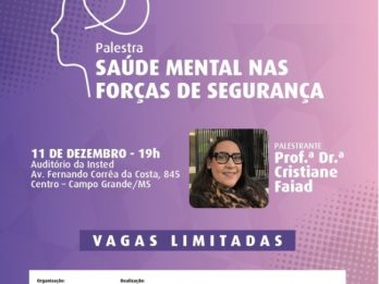 Os policiais Civis de Mayto Grosso so Sul estão sendo convidados a participarem da palestra “Saúde Mental nas Forças de Segurança”, que será ministrada pela Prof.ª Dr.ª Cristiane Faiad, da Universidade Federal de Brasília (UNB). O