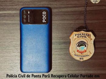 A Polícia Civil, por meio da 1ª Delegacia de Ponta Porã, recuperou nesta sexta-feira, 12/01, um celular que foi furtado em um comércio local. Um adolescente de 12 anos de idade foi identificado como autor. Ele foi conduzido à delegacia para prestar