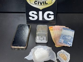 A Polícia Civil apreendeu na final da tarde de ontem, 47 porções de pasta base de cocaína embaladas para venda, e dinheiro proveniente do tráfico de drogas. Um cadeirante, que comercializava a droga em praça pública, foi preso em flagrante.