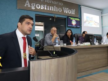 Nesta segunda-feira, 17/04, o Delegado de Polícia titular da Delegacia de Aral Moreira, Maurício Moura Vargas participou da sessão extraordinária na Câmara de Vereadores, para discutir a segurança nas escolas da do município. Além dos vereadores e do