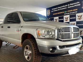 A Polícia Civil, em 01.02, por intermédio da Delegacia de Repressão aos Crimes de Fronteira-DEFRON, no âmbito da Operação Hórus, recupera caminhonete, DODGE RAM 2500 avaliada em R$ 165.000,00, objeto de estelionato no município de Nova Alvorada/MS, a