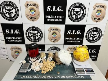 Durante o cumprimento de Mandados de Busca e Apreensão, em Maracaju-MS, decorrentes das investigações de um homicídio ocorrido no conjunto Olídia Rocha, a Polícia Civil prendeu em flagrante um indivíduo com 2,5kg de cocaína e pasta-base, que estavam