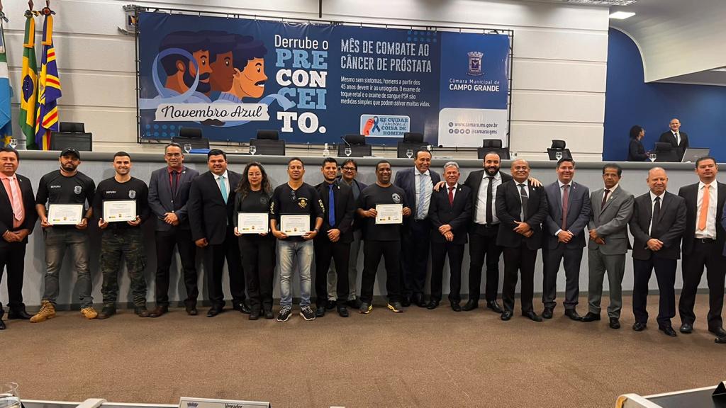 Nove policiais civis, lotados na Delegacia Especializada de Repressão a Roubos e Furtos de Veículos (DEFURV) receberam uma Moção de Congratulação da Câmara Municipal de Campo Grande. A homenagem é um reconhecimento aos relevantes serviços prestados