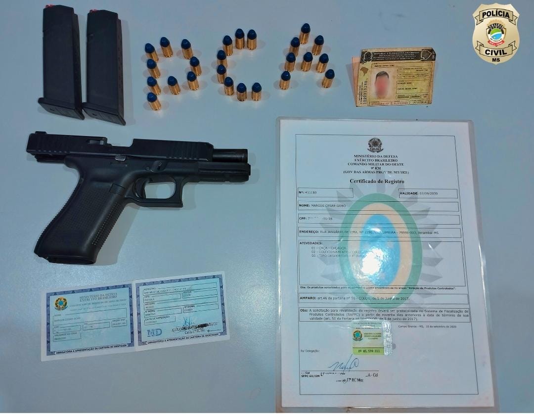Amambai (MS): Ação conjunta entre a PCMS, por meio da Delegacia de Amambai, PRE-TOR, Polícia Civil e Federal dos estados do Paraná e Santa Catarina e seus respectivos Institutos de Identificação possibilitou a prisão em flagrante de um homem por porte