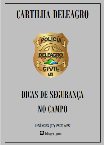 Campo Grande (MS): A Polícia Civil, por meio da DELEAGRO – Delegacia Especializada de Crimes Rurais e Abigeato lançou cartilha com dicas de segurança voltadas aos moradores de áreas rurais. O material, que tem por objetivo levar orientações