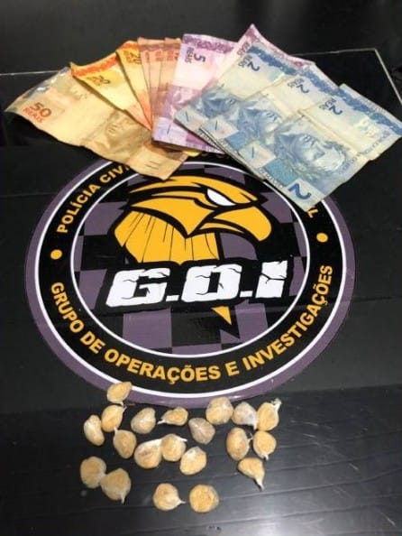 Campo Grande (MS): Após monitoramento em locais de alta incidência de crimes, mais especificamente na região do bairro Jardim Tijuca, investigadores do Grupo de Operações e Investigações – GOI flagraram um indivíduo, de 39 anos, comercializando