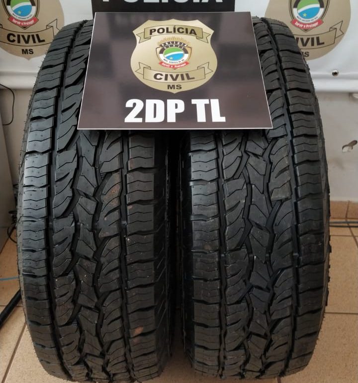 Três Lagoas (MS): Policiais civis da 2ª DPTL, após troca de informações com a Polícia Militar, recuperaram na tarde de ontem (12), dois pneus de camionete, 265/70/R16, furtados em uma loja de alinhamento e balanceamento localizada na Rua Marechal