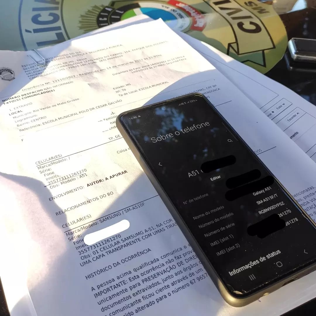 Rio Verde (MS): A polícia Civil recuperou nesta terça-feira, 19/04/, um aparelho celular extraviado em março no município de Rio Verde de Mato Grosso-MS. A localização e apreensão do objeto foi feita pela Seção de Investigações Gerais (SIG), da