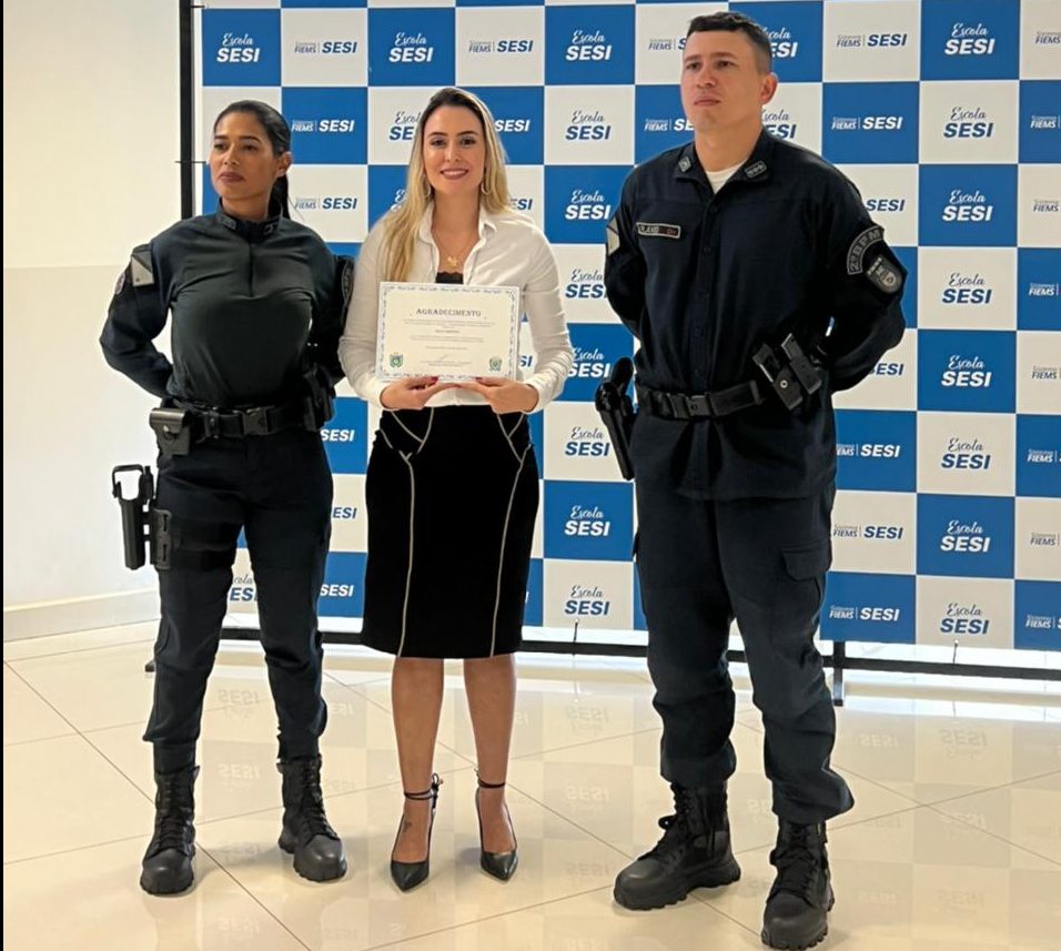 Três Lagoas (MS): A Delegada de Polícia Civil, Nelly Macedo, adjunta na Delegacia de Atendimento à Mulher (DAM) de Três Lagoas, participou hoje, 24/03/2022, do curso de formação de soldados da Polícia Militar, ministrando palestra sobre a atuação da
