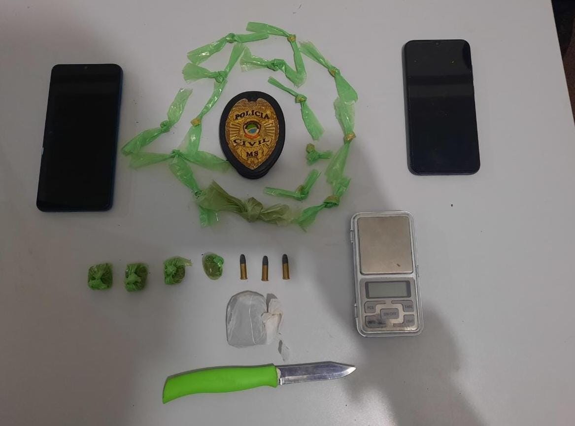 Ribas do Rio Pardo (MS): Na noite ontem, 08/02, a Polícia Civil prendeu em flagrante T. R. C. (24) e F. S. B. (35) suspeitos de praticar os crimes de tráfico de drogas, associação para o tráfico e posse irregular de munições de uso permitido. A prisão