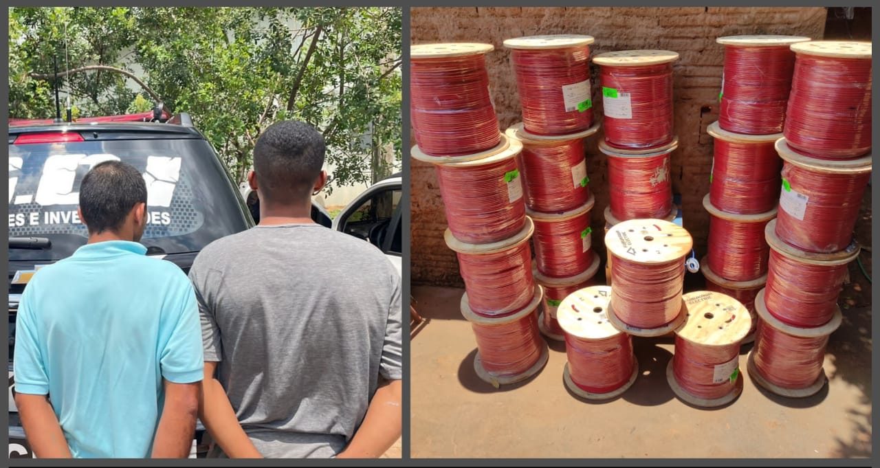 Campo Grande (MS): A Polícia Civil prendeu dois homens em flagrante, por furto de fios de cobre. As prisões foram efetuadas por uma equipe do Grupo de Operações e Investigações (GOI), no dia 27/12/2021, na Rua Piracanjuba, bairro Lagoa Dourada, em Campo