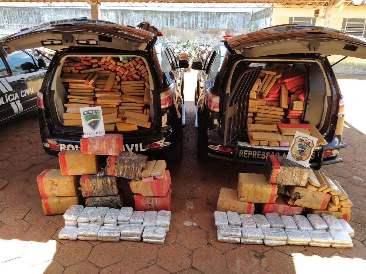 Ponta Porã (MS): A Polícia Civil, por intermédio da Delegacia de Repressão aos Crimes de Fronteira (DEFRON), apreendeu nesta terça-feira, 21/12, 2.600 kg de maconha e dois automóveis, na cidade de Ponta Porã-MS. Duas pessoas foram presas por tráfico