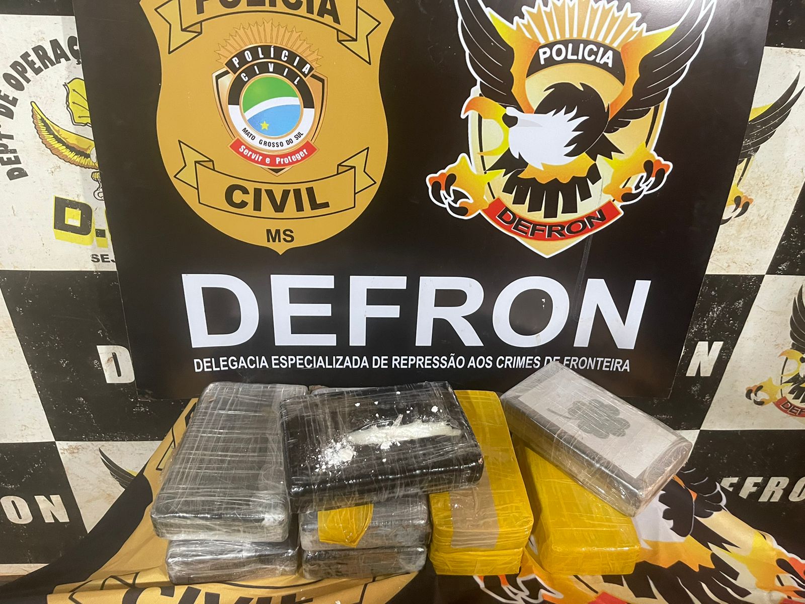 Ponta Porã (MS): A Polícia Civil, por meio da Delegacia Especializada de Repressão aos Crimes de Fronteira (DEFRON), no âmbito das Operações: Boas Festas, Fronteira Segura e Hórus, apreendeu 6,55 kg de cloridrato de cocaína, 3 kg de pasta base de