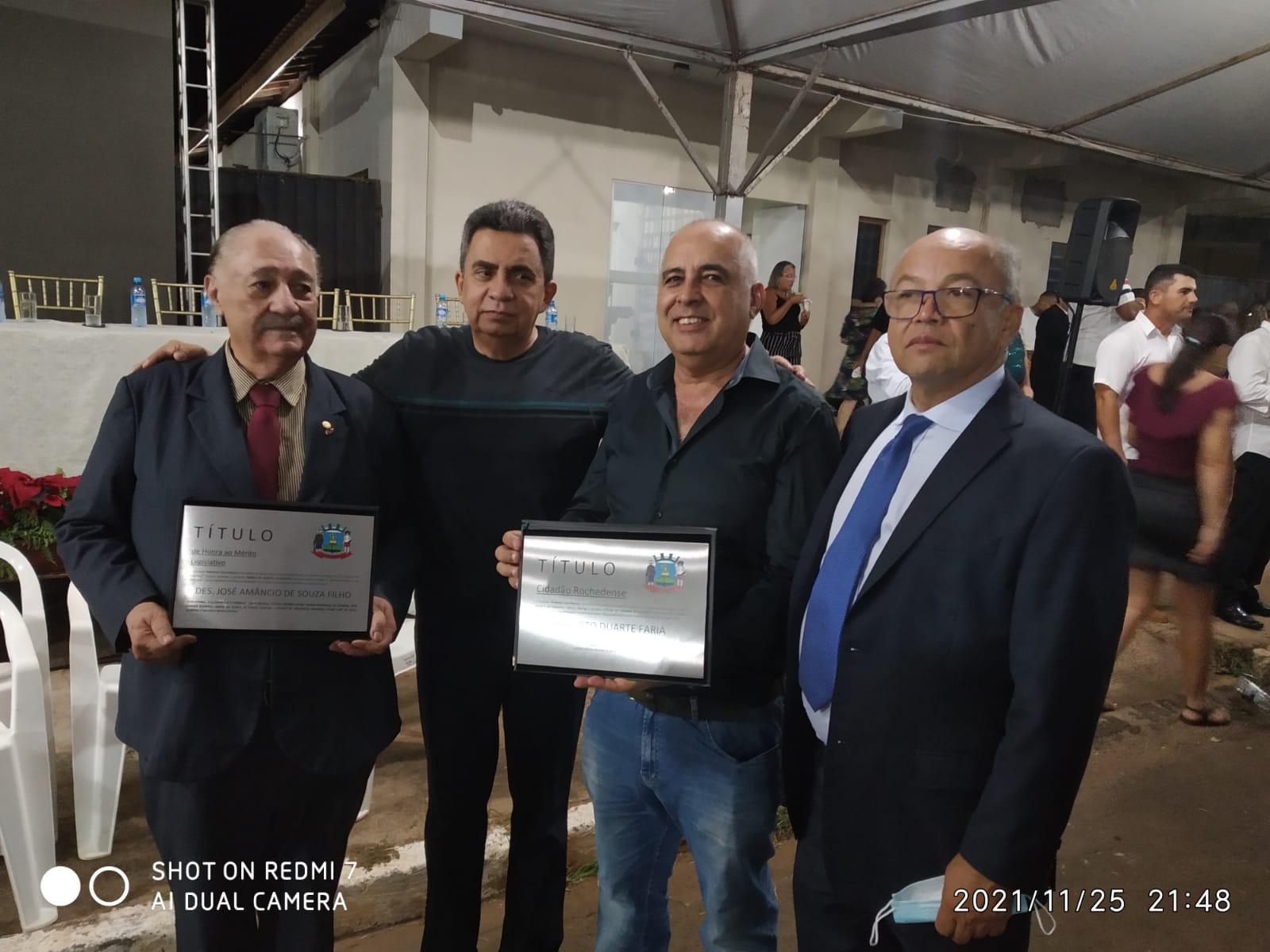 Rochedo (MS): O delegado da Polícia Civil, Roberto Duarte Faria, foi homenageado ontem, 25/11, pela Câmara Municipal de Rochedo. Ele foi agraciado com o título de cidadão rochedense. A outorga foi feita pelo presidente da Câmara, vereador Waldemir Lúcio