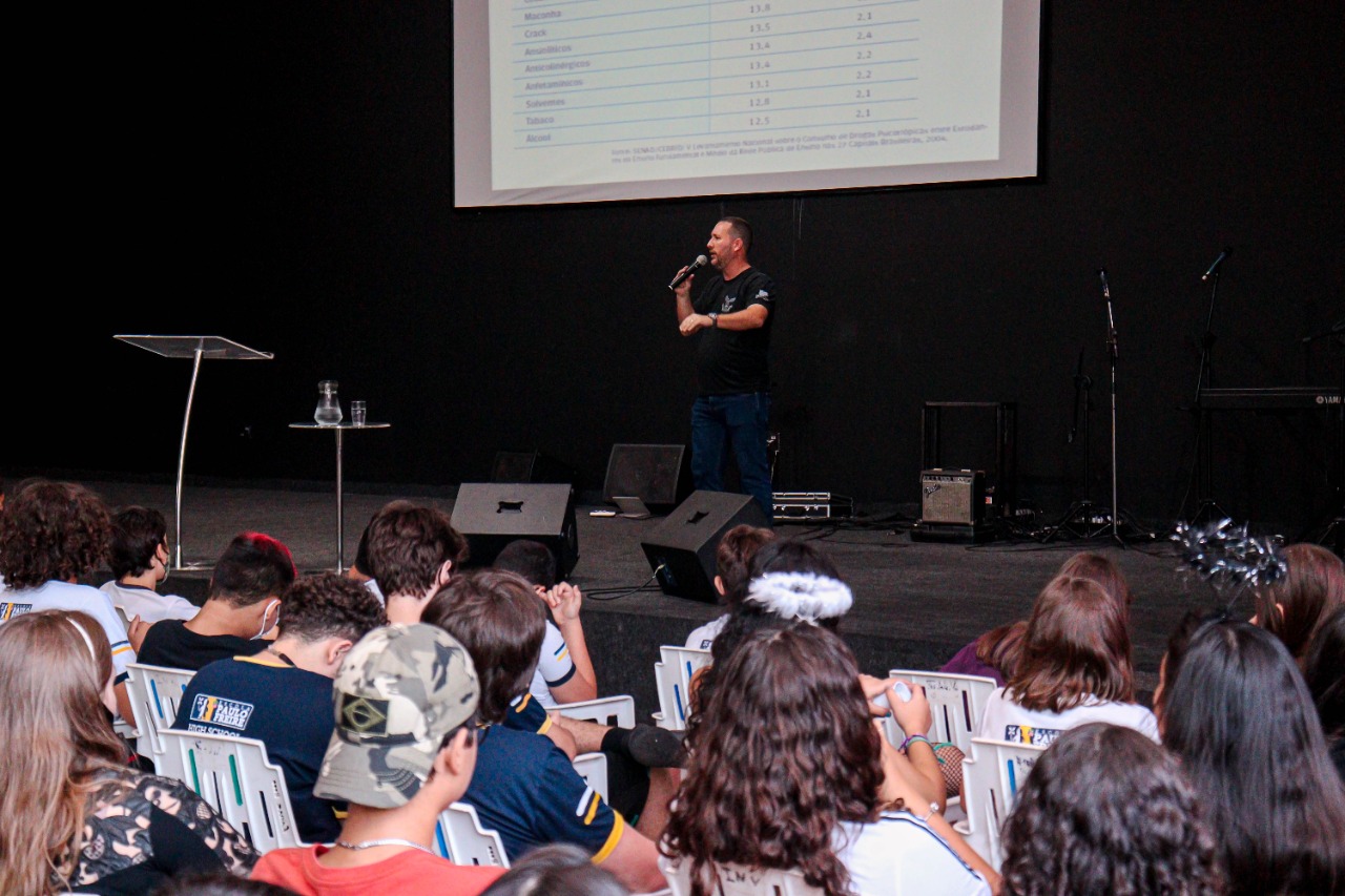 Campo Grande (MS): A Polícia Civil do Mato Grosso do Sul, por intermédio do Delegado Gustavo Ferraris, titular da Delegacia Especializada de Repressão ao Narcotráfico – DENAR, teve a oportunidade de ministrar palestra a 350 alunos do colégio