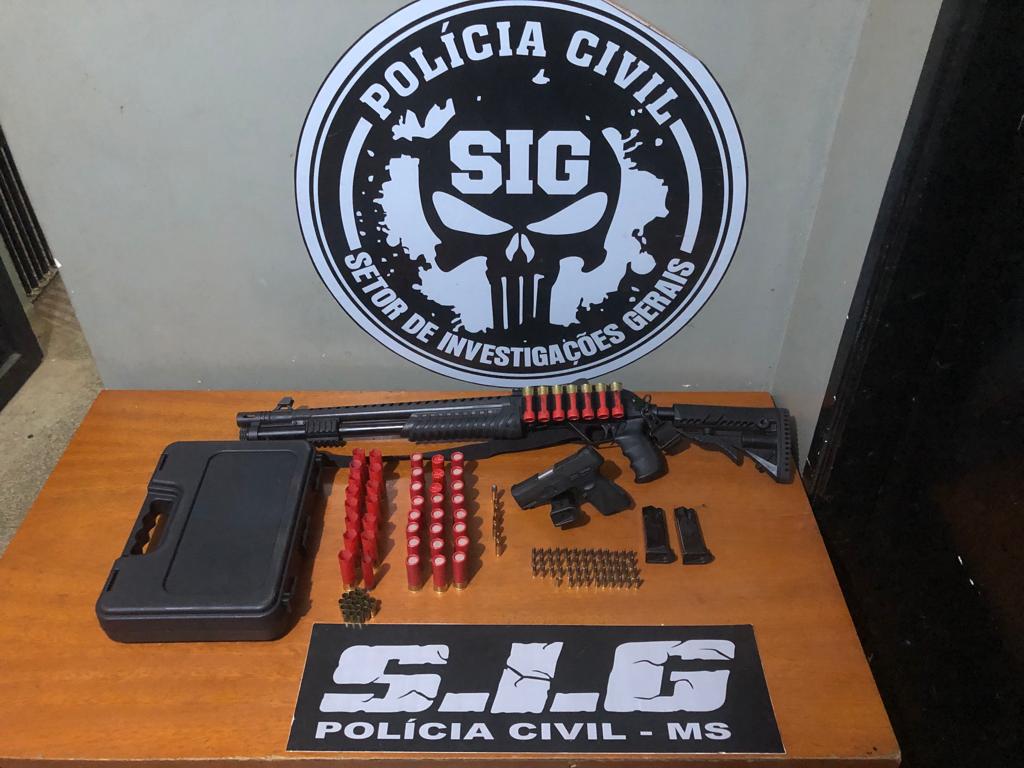 Aparecida do Taboado (MS): A Polícia Civil prendeu ontem, 15/10, por volta das 13 horas, um homem de 47 anos, por porte e posse irregular de armas de fogo e munições. A prisão foi feita por uma equipe da delegacia de Aparecida do Taboado. Na noite de