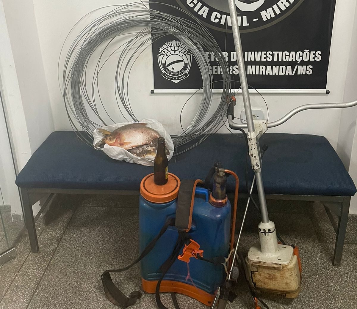 A Polícia Civil prendeu dois adultos e apreendeu um adolescente pela prática de três furtos qualificados de semoventes domesticáveis de produção (peixes) e ferramentas agrícolas. As prisões, aconteceram no último dia 20/09, em Miranda. Os furtos