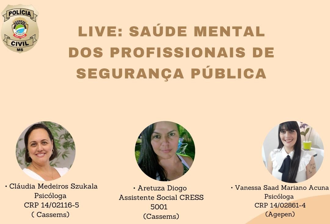 Campo Grande (MS): A Polícia Civil, por meio da Coordenadoria de Atendimento Psicossocial da Polícia Civil/Ceapoc, convida os servidores para a live “Saúde Mental dos Profissionais de Segurança Pública”. A palestra virtual contará com a presença da