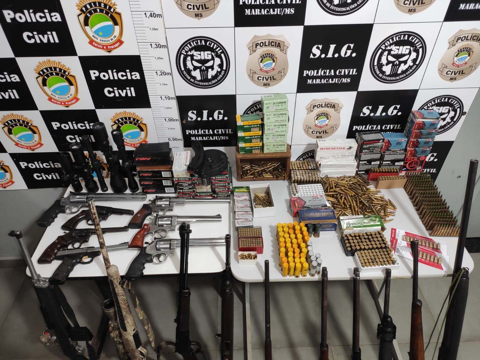 A Delegacia de Polícia Civil de Maracaju, com o apoio da Delegacia de Itaporã e SIG-Dourados, cumpriu três mandados de busca e apreensão, sendo um em Caracol/MS, outro em Bela Vista/MS e outro em Maracaju/MS e prendeu dois indivíduos por posse irregular