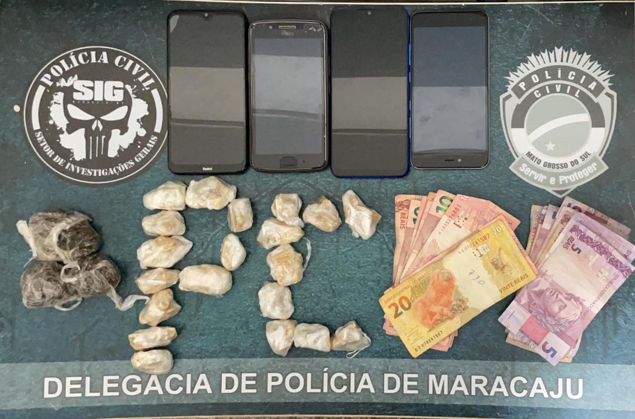 A equipe de investigação da Delegacia de Polícia de Maracaju apreendeu na data de ontem, 10/08, um adolescente de 17 anos por ato infracional análogo ao crime de tráfico de drogas. Com ele foi encontrado crack e maconha, além de cédulas de dinheiro e