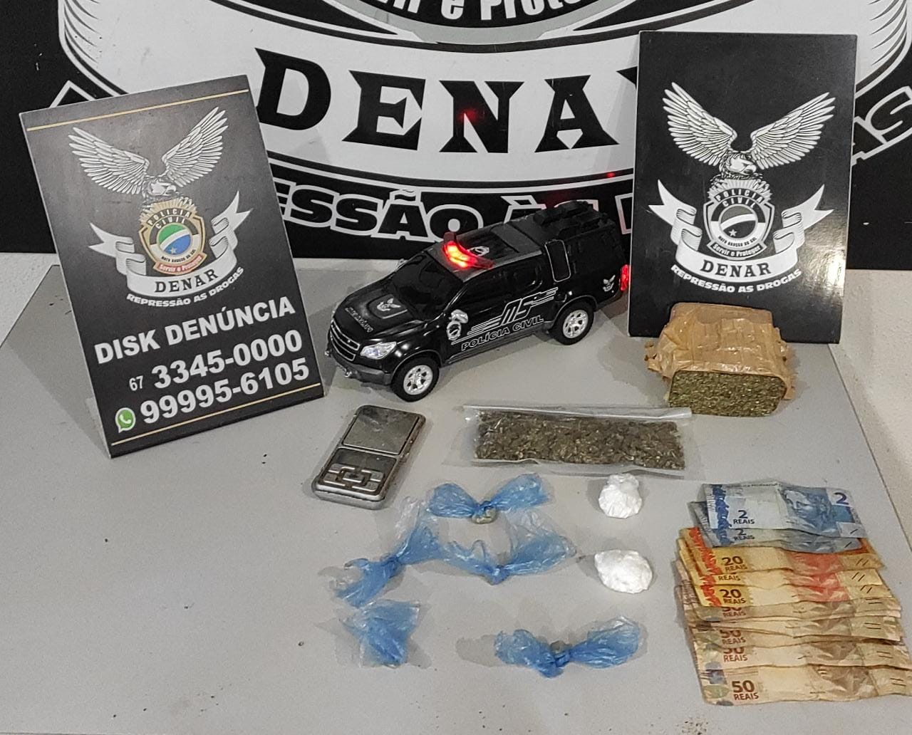 Campo Grande (MS): Policiais civis da Delegacia Especializada de Repressão ao Narcotráfico – Denar, realizou a prisão de um jovem de 26 anos e apreendeu maconha, pasta-base e cocaína em residência situada no Jardim Nhanhá, na tarde desta