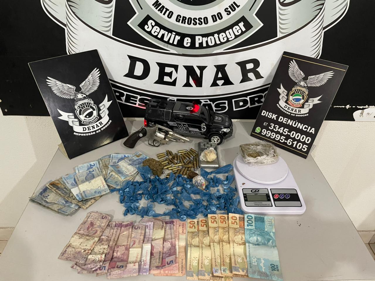 Campo Grande (MS): Policiais civis da Delegacia Especializada de Repressão ao Narcotráfico Denar teve êxito em realizar a prisão de um casal no Nova Lima, uma mulher com idade de 23 anos e um homem de 21, e apreender maconha, cocaína, arma de fogo e