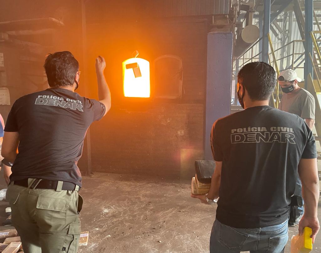 Campo Grande (MS): Na manhã de hoje, a Polícia Civil, através da DENAR, efetuou solenidade de incineração de entorpecentes nas dependências de um frigorífico nesta capital, tendo participado do evento o Delegado da DENAR e toda a equipe