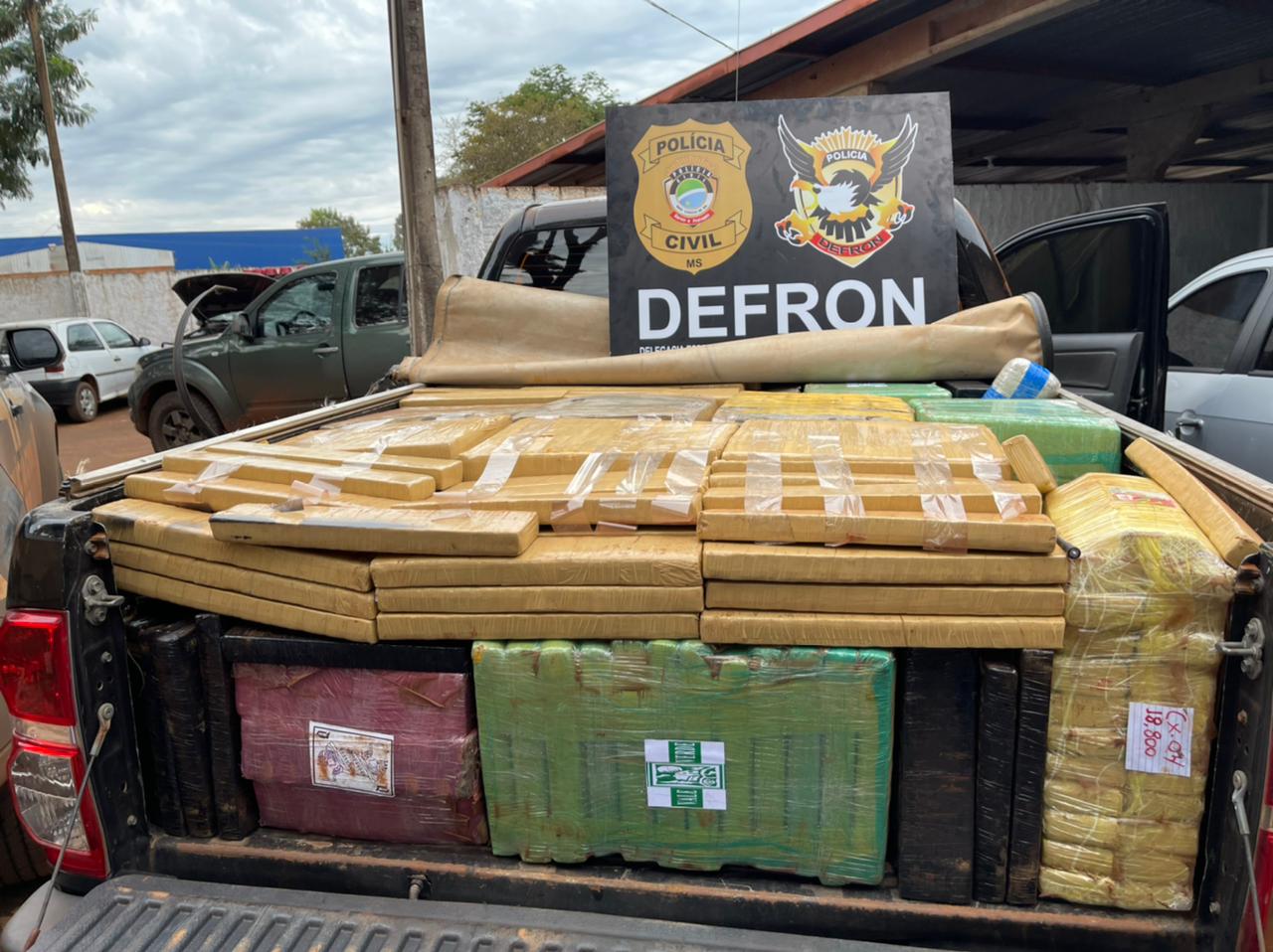 Dourados (MS): Policiais da Delegacia Especializada de Repressão aos Crimes de Fronteira-DEFRON, interceptaram uma camionete transportando duas toneladas de maconha e skunk e efetuaram a prisão do motorista do automóvel e de um outro que se utilizando de