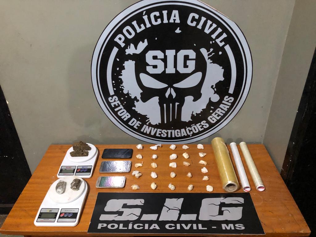 Aparecida do Taboado (MS): A Polícia Civil prendeu dois indivíduos pela prática do crime de tráfico ilícito de drogas nesta segunda-feira (03). Durante verificação de procedência de informações relativas a tráfico de drogas, policiais civis