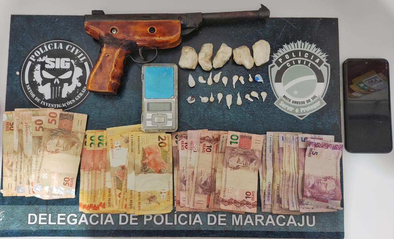 Maracaju (MS): A Polícia Civil, través da Delegacia de Polícia de Maracaju, apreendeu, na noite desta terça-feira (27), um adolescente, de 18 anos, pelos crimes análogos à tráfico de drogas e posse de arma de fogo de uso permitido, no bairro Vila