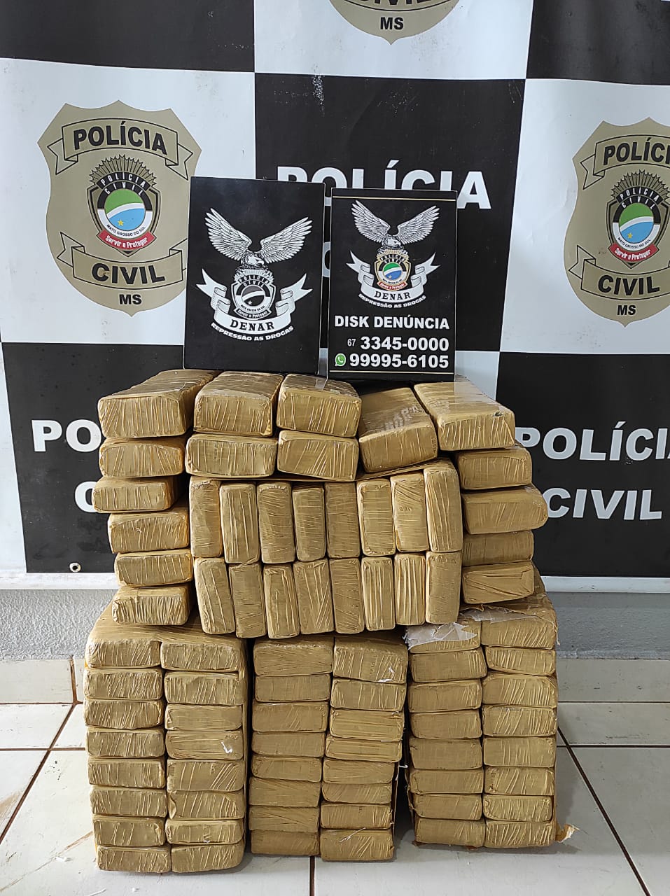 Campo Grande (MS): A Polícia Civil do Mato Grosso do Sul, por intermédio da DENAR, em trabalho de investigação iniciado por denúncia anônima teve êxito em realizar a apreensão de 102kg de maconha, fato ocorrido no final da manhã desta