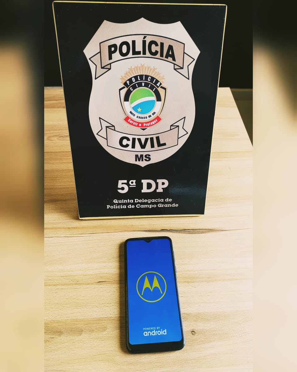 CAMPO GRANDE (MS): Na tarde de ontem (04/03), uma equipe do Setor de Investigações Gerais da 5ª Delegacia de Polícia, localizou, no bairro Piratininga, em Campo Grande, um aparelho modelo Motorola/Moto G8 Plus, que havia sido furtado no mês de