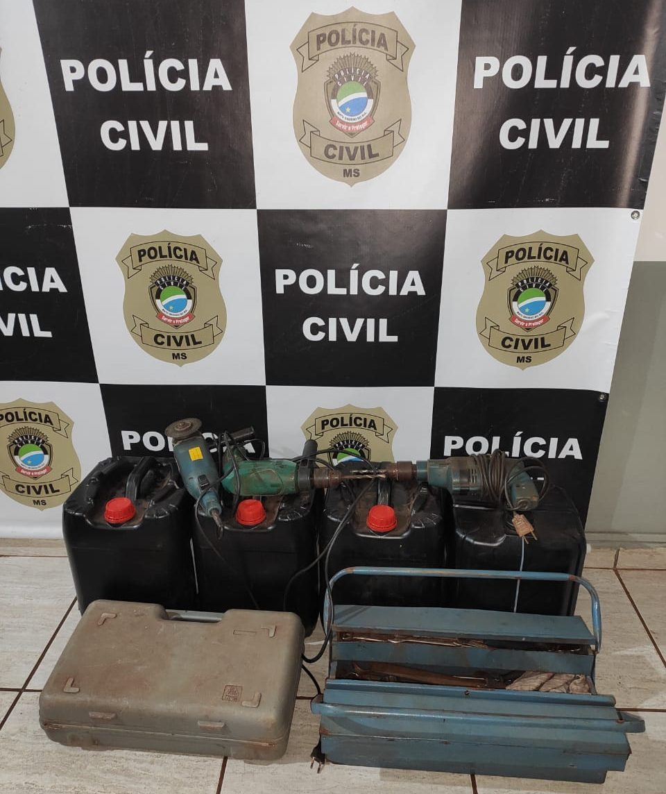 Rio Brilhante (MS): A Polícia Civil, através da Delegacia de Rio Brilhante, prendeu em flagrante, ontem (3), três homens por receptação no Centro de Rio Brilhante/MS. Os objetos foram furtados de uma chácara no dia 28 de fevereiro deste ano. Foram