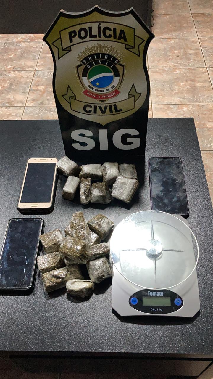 Nova Andradina (MS): Ontem (3), a Polícia Civil, através do Setor de Investigações Gerais (SIG) da 1ª Delegacia de Nova Andradina, prendeu em flagrante um homem de 23 anos e outro indivíduo de 24 anos suspeitos por tráfico de drogas e associação para