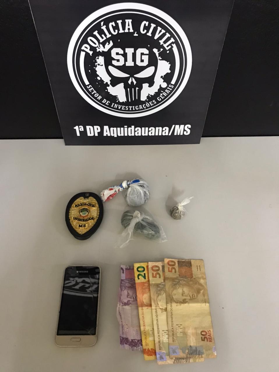 A 1ª Delegacia de Polícia Civil de Aquidauana, através do Setor de Investigações Gerais (SIG), prendeu, ontem (4), em flagrante por tráfico de drogas um homem de 43 anos no bairro Vila Paraíso, em Aquidauana/MS. No local, os agentes encontram porções